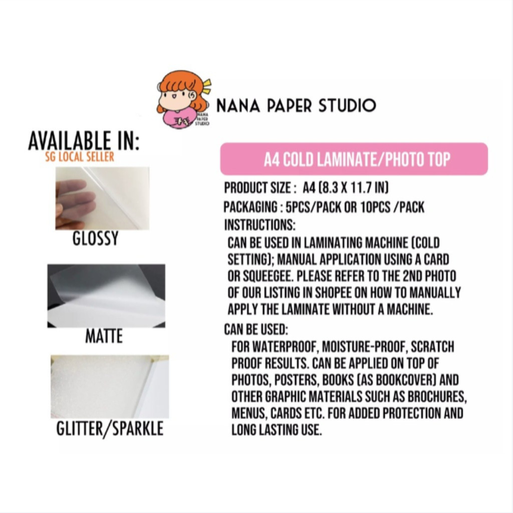 ๐Ÿ‡ธ๐Ÿ‡ฌ A4 5/10 Sheets Cold Laminate Sticker Sheet Photo Top Transparent Stickers Glossy Matte