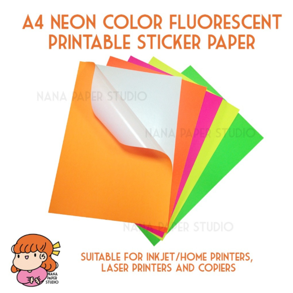 ๐ธ๐ฌ A4 Neon Fluorescent Printable Adhesive Sticker Papers