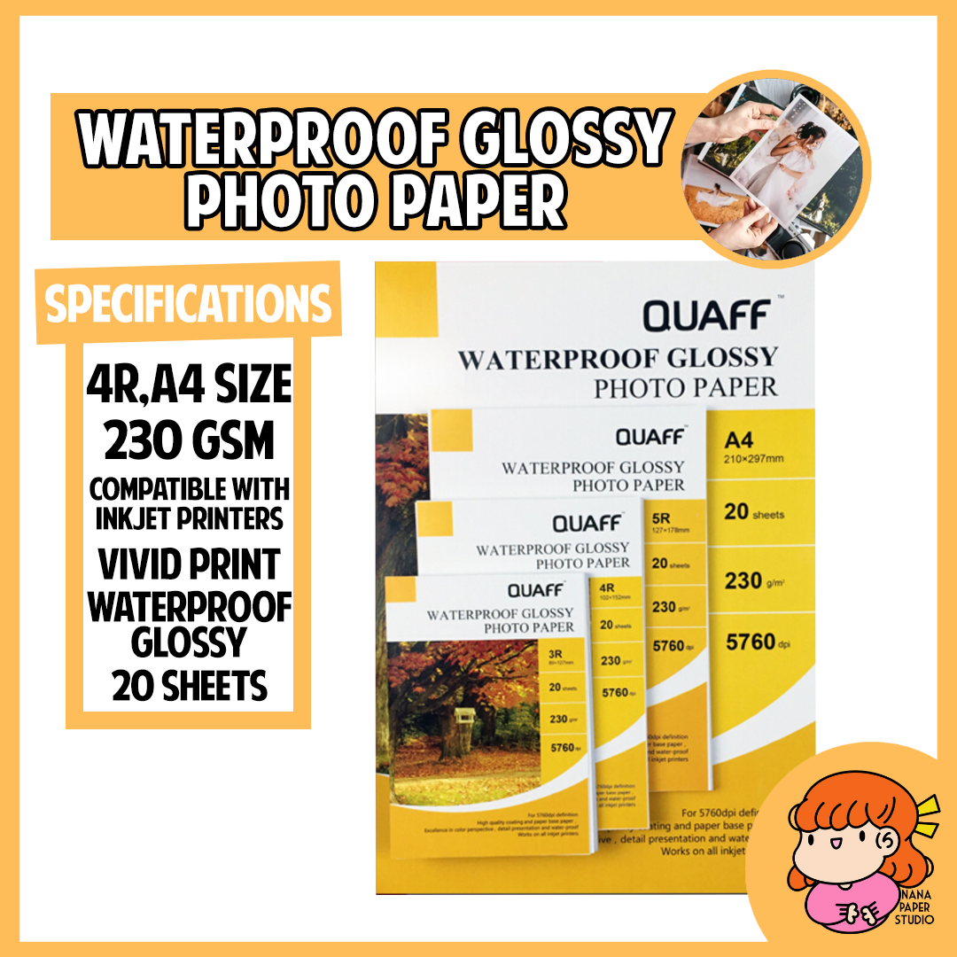 πΈπ¬A4 QUAFF Waterproof Glossy Inkjet Photo Paper 20 Sheets nana paper studio