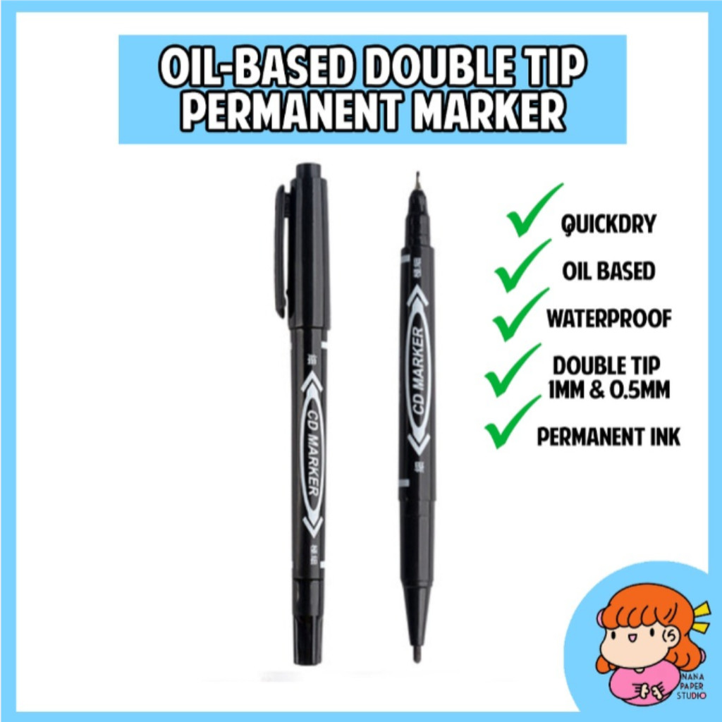 πΈπ¬ Double Tip Permanent Marker Oil Based Black Pen 1 PC