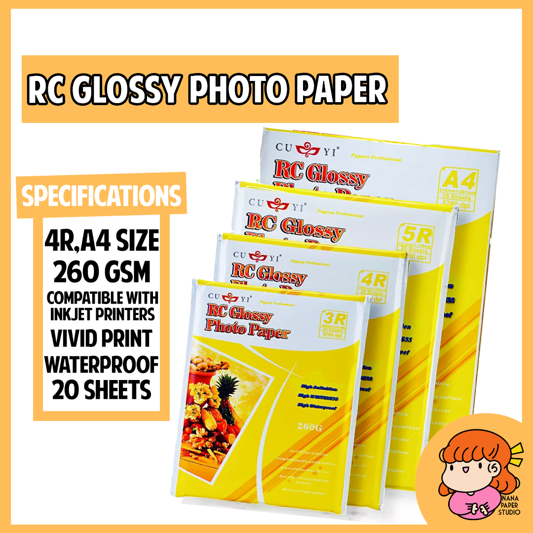🇸🇬RC Glossy Inkjet Photo Paper 260GSM 20 sheets A4 4R nanapaperstudio