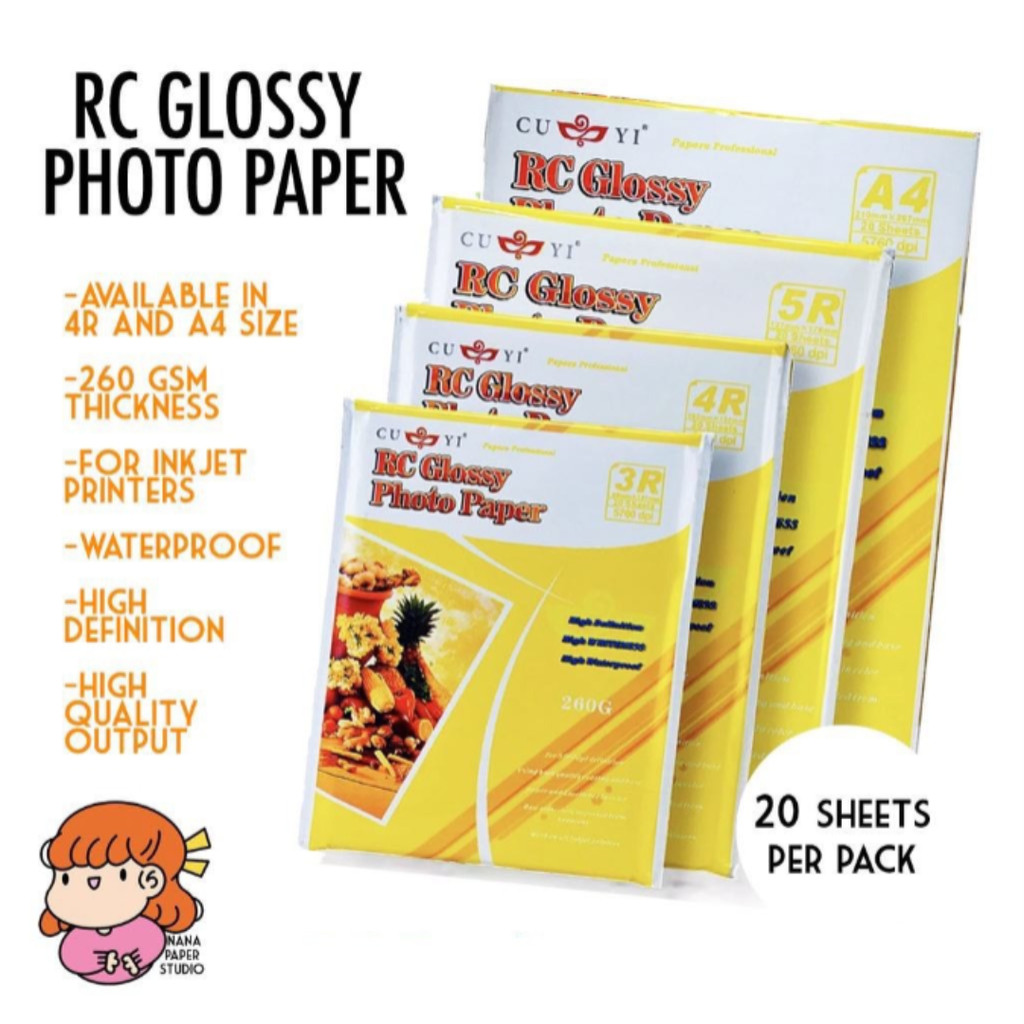 🛒 Choose your preferred size — A4 or 4R — and enjoy vivid, waterproof prints every time with Nana Paper Studio’s RC Glossy Inkjet Photo Paper!