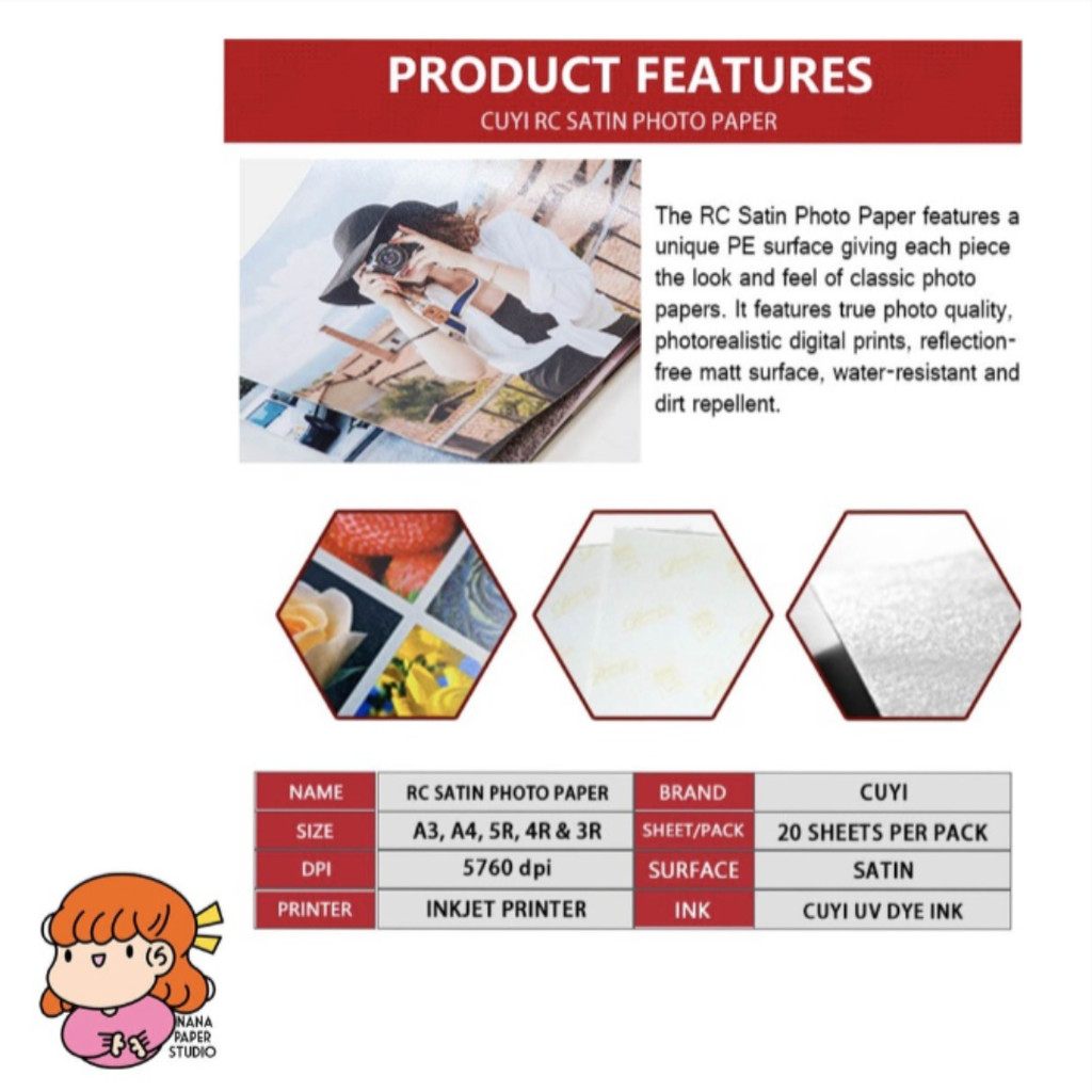 πΈπ¬ RC Satin Textured Inkjet Photo Paper A4 / 4R β 260gsm (20 Sheets)