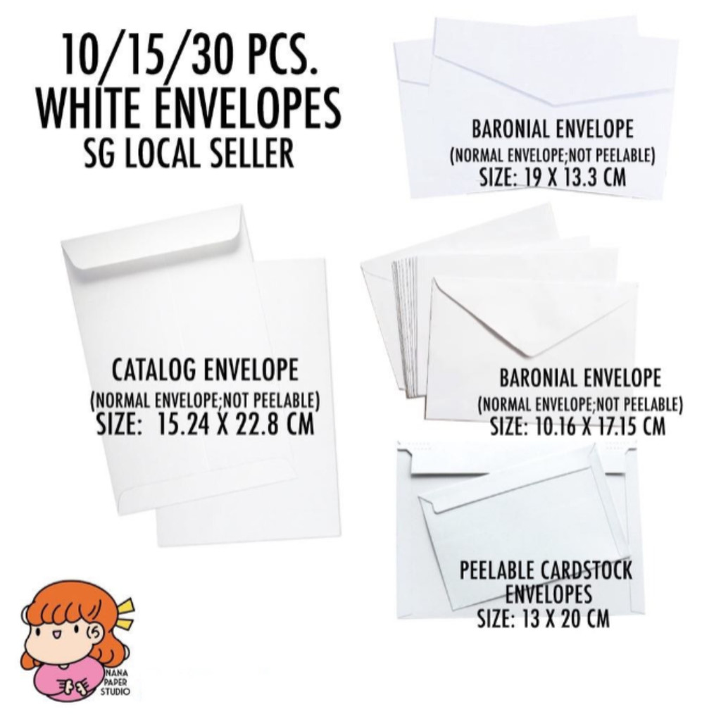 πŸ‡ΈπŸ‡¬ White Envelope Paper Letter Small and Big Baronial Catalog Peelable 15pcs/30pcs nanapaperstudio
